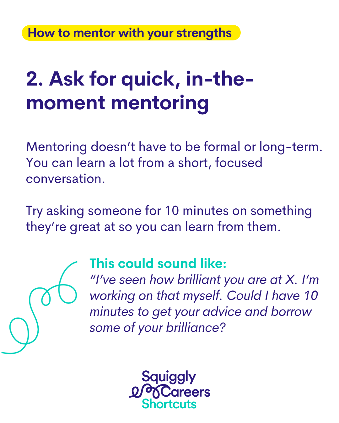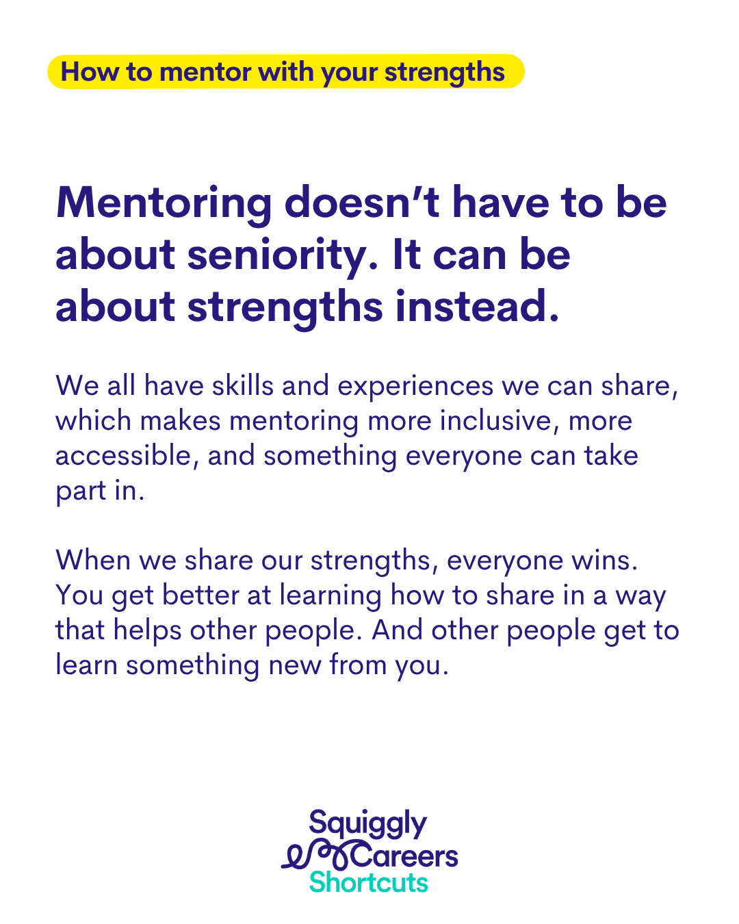 What if mentoring had nothing to do with seniority β and everything to do with strengths? In this Squiggly Shortcut, Sarah makes the case for a more inclusive, more accessible approach to mentoring that every team can make happen straight away.